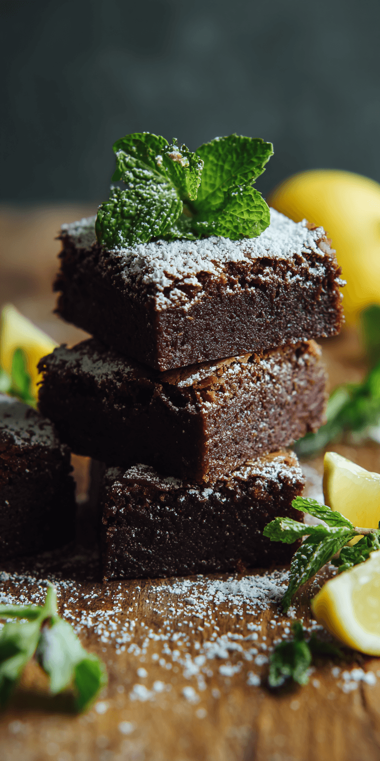 - Make the glaze: whisk powdered sugar, lemon juice, and cream until smooth. Drizzle over the brownies. Top with thinly sliced mint leaves. Let the glaze set before slicing.